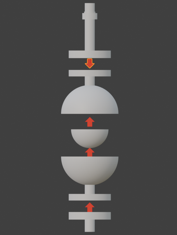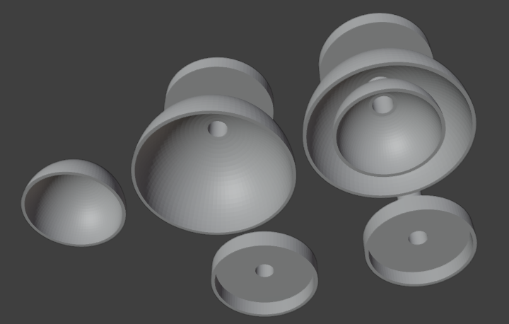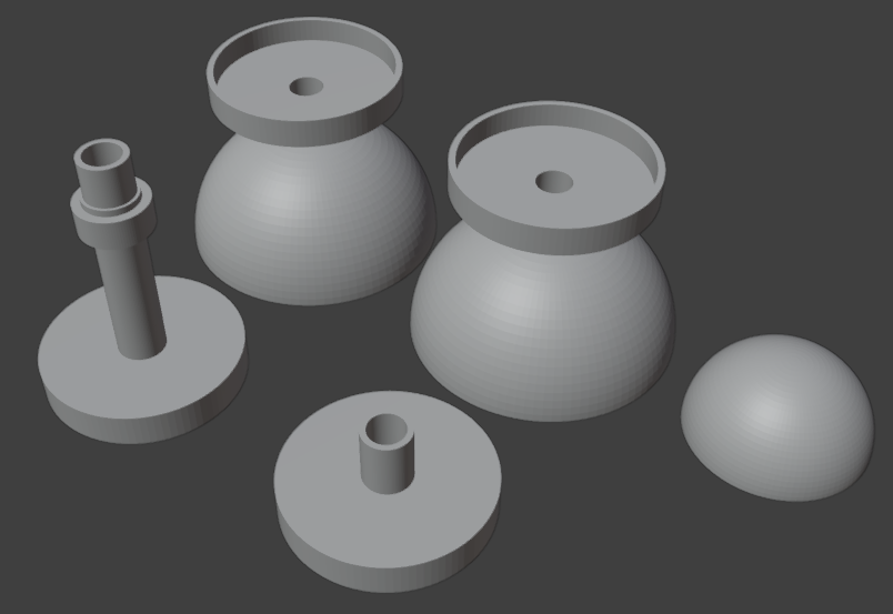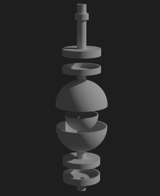 | 外側 44mmφ内側28mmφの2層の球体Phantomです 上からは内側に、下からは外側に液体を満たすことができます |